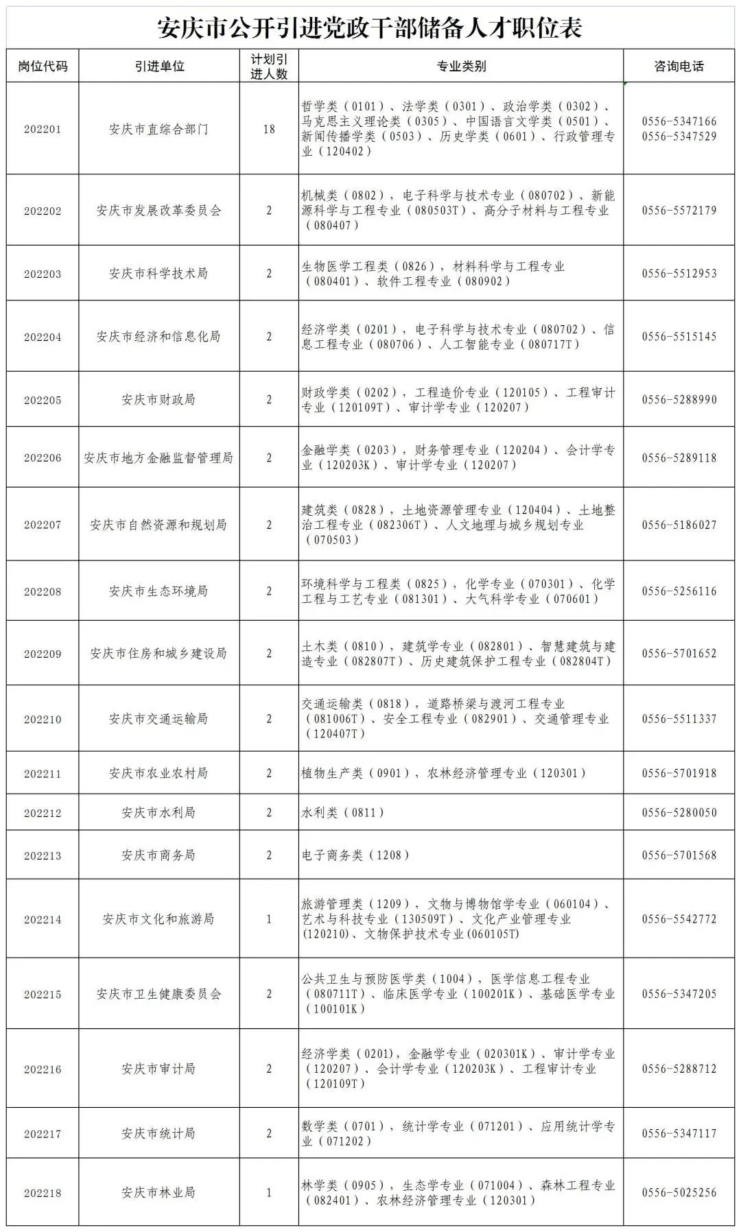 为进一步加强优秀年轻干部人才储备,优化党政干部队伍结构,为现代化美好安庆建设提供坚强的人才智力支撑,拟面向国内外知名高校应历届毕业生引进一批党政干部储备人才。现将有关事项公告如下。